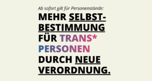 Statt dem rechten Kulturkampf setzen wir auf volle Teilhabe und Selbstbestimmung für alle trans* Personen. Insbesondere im Bereich der Gesundheitsversorgung treten wir für bessere Absicherung, mehr Versorgungsangebote und einen wissenschaftsbasierten Zugang ein. Mehr dazu erfahrt ihr in unserem eigenen Grundsatzprogramm: Für ein selbstbestimmtes Leben für ALLE!